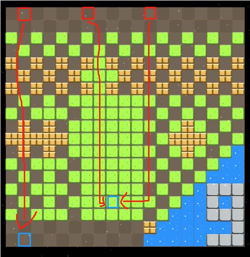 从官方给出的信息看,AI的出生点,玩家的出生点、玩家基地的出生点都没有变化,AI的策略目前还是A星全图搜索。主战场的障碍物不是很多,但是草地很多,对于进攻方易于隐藏,对于玩家而言可能找到AI即可。对于2、3号位AI而言,一条直线可以直接到达玩家基地处,防守对于玩家而言比进攻要重要。