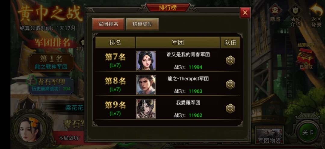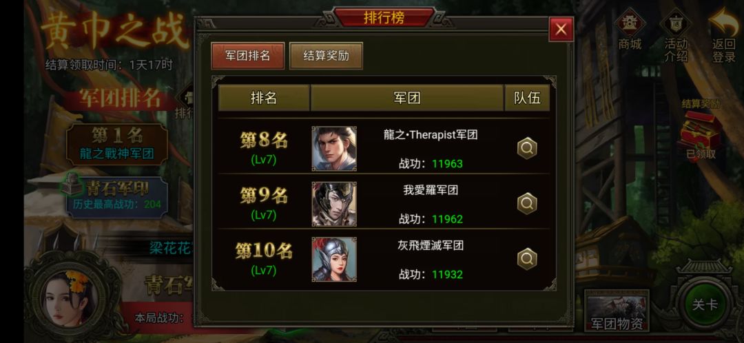 荣誉殿堂 | 刷新纪录!黄巾之战排行榜!