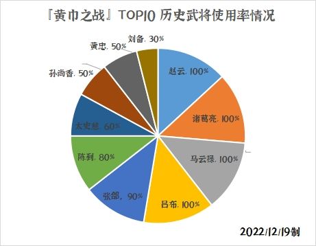 由于黄巾之战的特殊性,大大们可以中途切换队伍,因此本次战功前十玩家的历史武将使用情况,只取使用率靠前的前十位供大家参考喔~