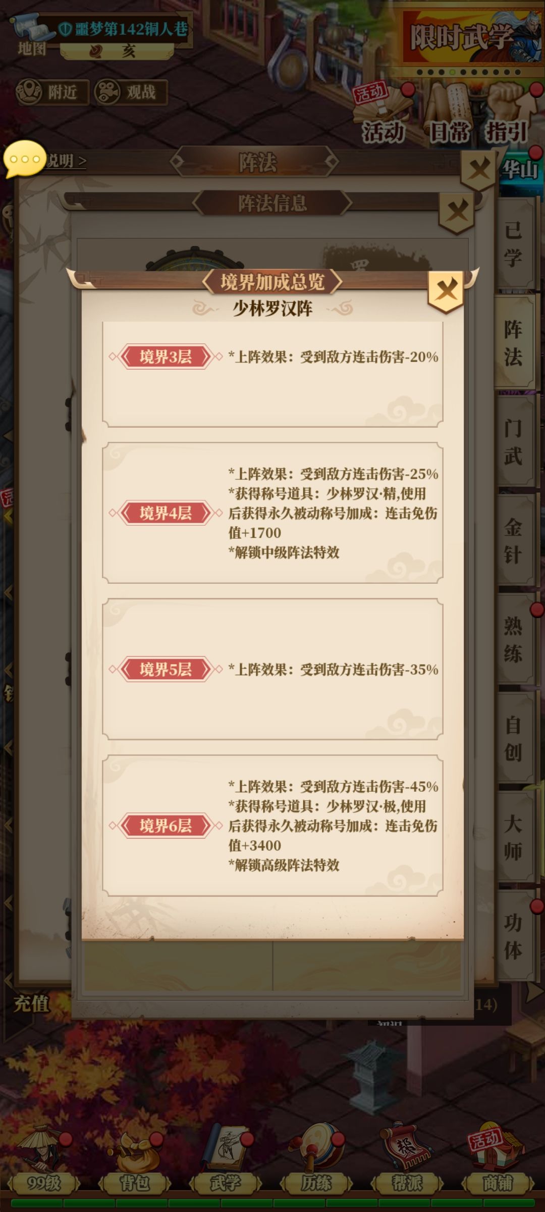 选择少林罗汉阵,攻击向玩家能倚仗的也就是连击伤害了,那就把它减没。