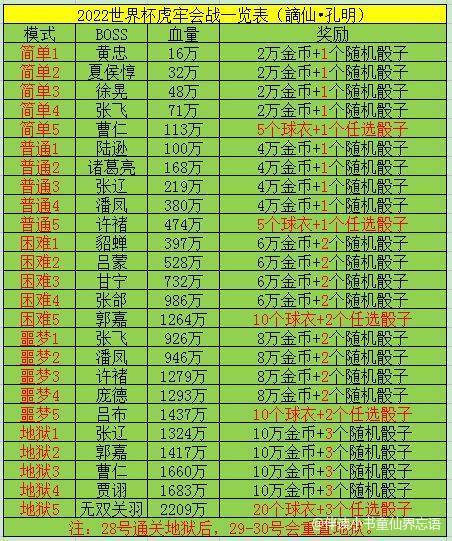 本次世界杯嘉年华活动,玩家能够平白收获吕布无双球王新皮肤,这个新时装价值几何,明眼人都明白。有玩家说是限时皮肤,书童不信,参考之前的大乔时装和姜维时装,都是永久拥有。每个人都不会花代价获取吕布新皮肤,书童最后想说,如果能轻松白嫖的为啥要错过呢!理论上第六天开始都能通关虎牢会战地狱难度,7天下来玩家即使不兑换骰子结合7天得登陆奖励也可获得:60个随机骰子、22个任选骰子,世界杯庆典游园每圈24步,8圈192点,任选骰子肯定选最大点数4(为了步格上的好资源,任选骰子能帮你精准拿下),192-22×4=104点,再加上每天可以兑换4个随机骰子=4×7=28个,88个随机骰子随机出104点,简直超级简单,我们都可以轻松白捡吕布新皮肤!