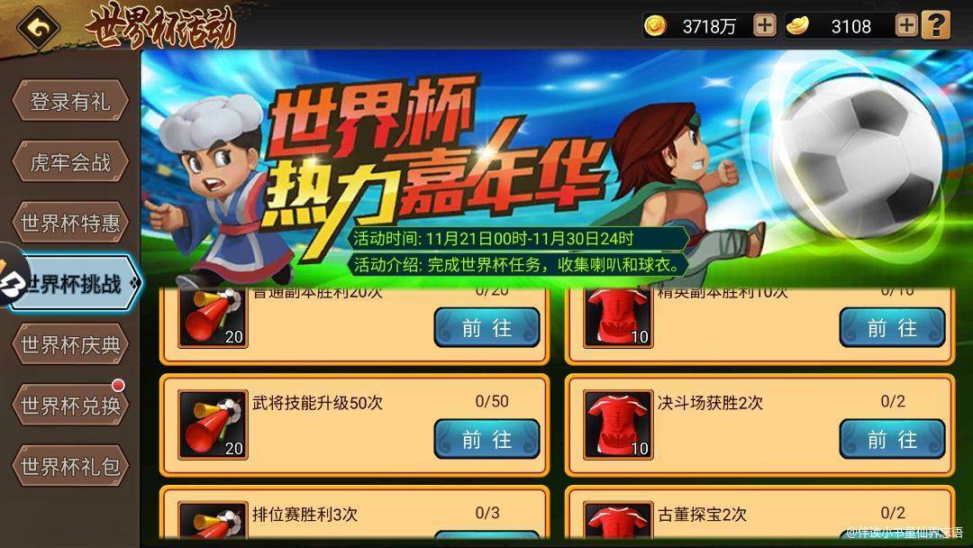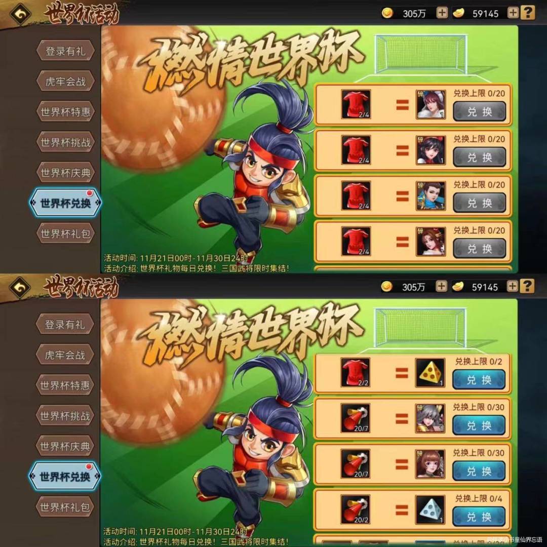 每天我们可以通过世界杯挑战环节,完成指定的两波任务,能获得60个喇叭和30件球衣的奖励,可分别在世界杯兑换中兑换每日限量的2个任选骰子和4个随机骰子,此环节涉及到喇叭和球衣的消耗,玩家活动期间每天至少可以获得60个喇叭、30件球衣,可能有玩家会拿球衣优先兑换四个女冠将中的一位,这样就没有多余的球衣兑换任选骰子,还好商店提供了骰子的售卖,但书童觉得极不可取,7天走8圈很简单,即使不换任选骰子也同样轻松。因此喇叭当然是优先兑换随机骰子!星将碎片你也看不上。这里书童还是建议大家酌情兑换任选骰子哦,球衣换美女武将先。