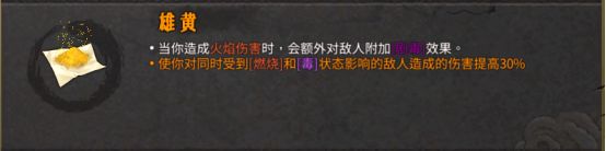 增伤靠雄黄的橙色效果30%增伤但触发较麻烦,若雄黄不为橙色则不选择黑火药