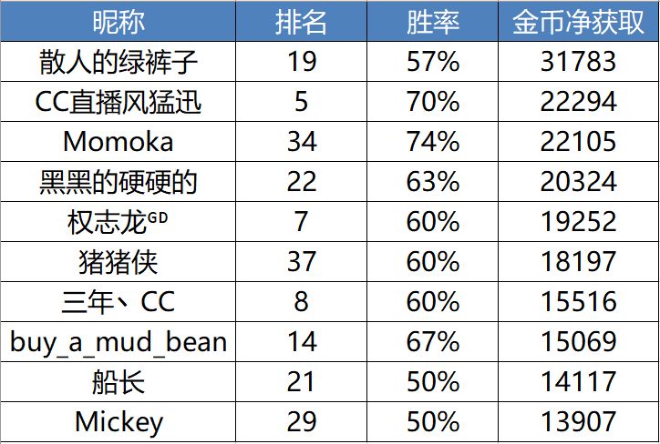 有人欢喜,自然就有人忧。这句话说出来还有点扎心,不过的确是事实:周赛前50名的玩家里,真的有人在亏金币打比赛: