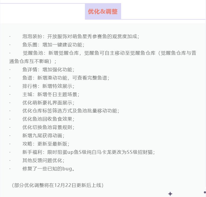 *每只星座鱼都有对应的6只星座伴生鱼,星座伴生鱼都有1种变异形态;