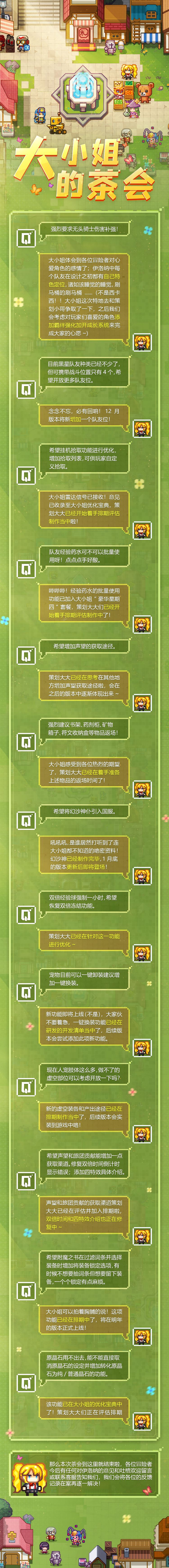 近期大家向大小姐提出了很多Q&A疑问和建议,大小姐汇总之后连夜找到策划大大进行盘问!下面就是本次针对玩家建议,未来将会在游戏内产生的改动,请各位冒险者查收 ~![[嗒啦啦2_星星眼]](https://img-tc.tapimg.com/market/images/bb08c5f7fa1ffa7d19f3cd9c4ce30ca1.gif)