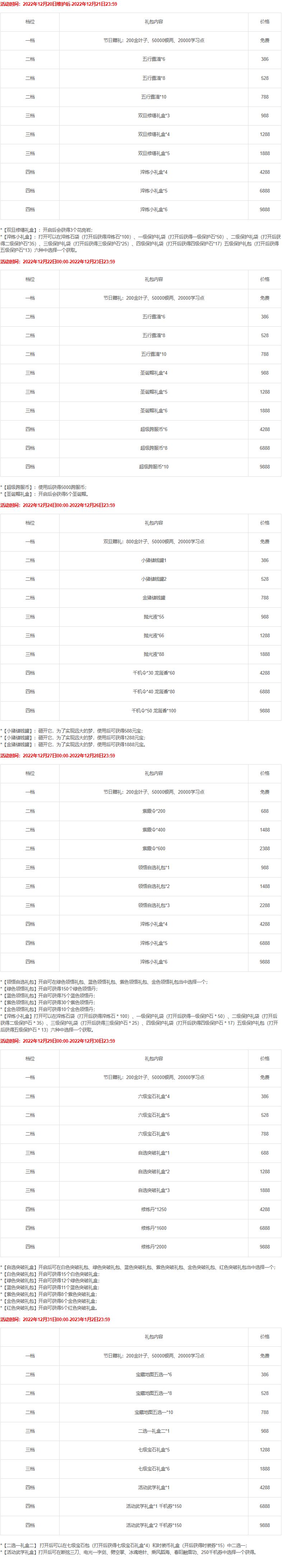 活动时间:2022年12月20日维护后-2023年1月2日23:59