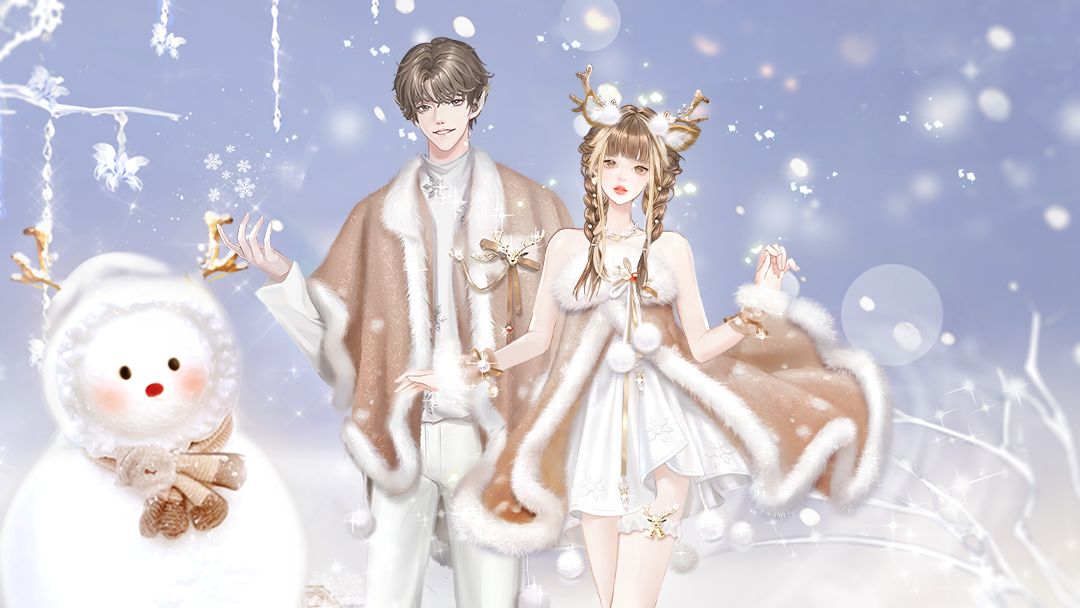 雪地上精灵可爱的麋鹿雪人
