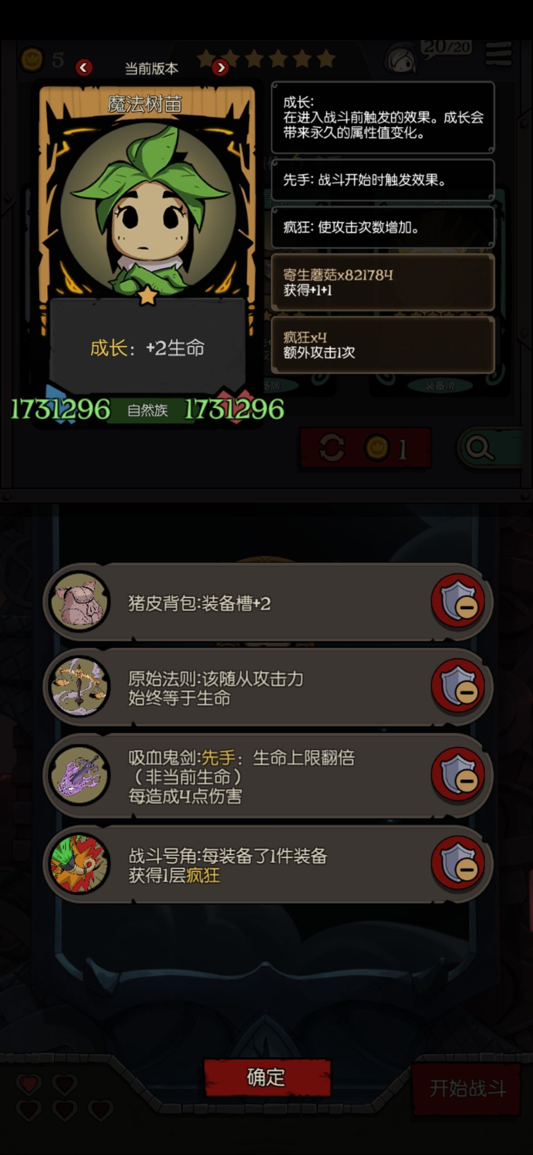 。(注意手上的寄生蘑菇和小蘑菇,本打法的两位主C)