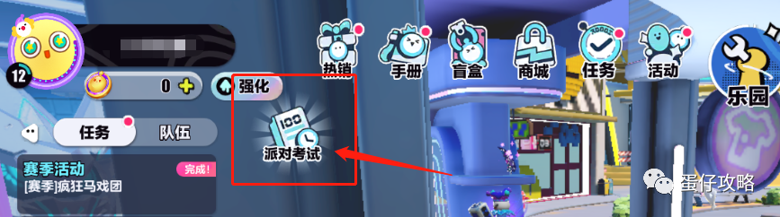 蛋仔派对的成长系统叫作派对卷,可以点击首页上方相关的按键就可以进入派对卷相关的界面。