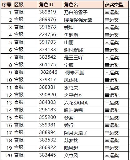 1、我们会在所有发帖的玩家中抽取20名玩家作为幸运玩家,发放幸运奖;所有参与此次活动未中奖的玩家将获得干饭奖励。