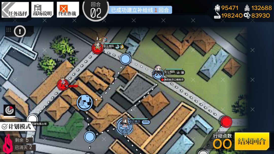 左上下打捞队,指挥部下二队(需要这队能打一战,个人推荐单燃烧弹smg),然后如图计划模式拉过去就行了,记得再下一个狗粮队。两回合两战两判