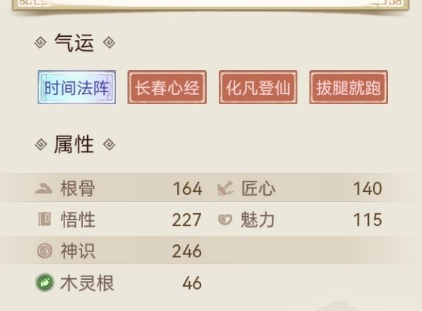 长春心经:神识加10,木灵根加6。化凡登仙:悟性加8,神识加2,修为丹加成加10%。