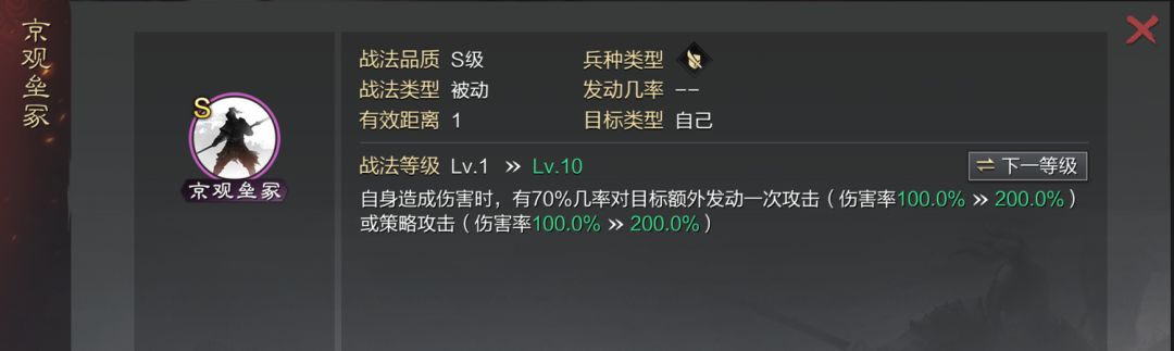 【这个武将的主要玩法就是围绕着一个思路:用其他战法或者武将的配合使皇甫嵩造成伤害从而带动京冠垒冢】