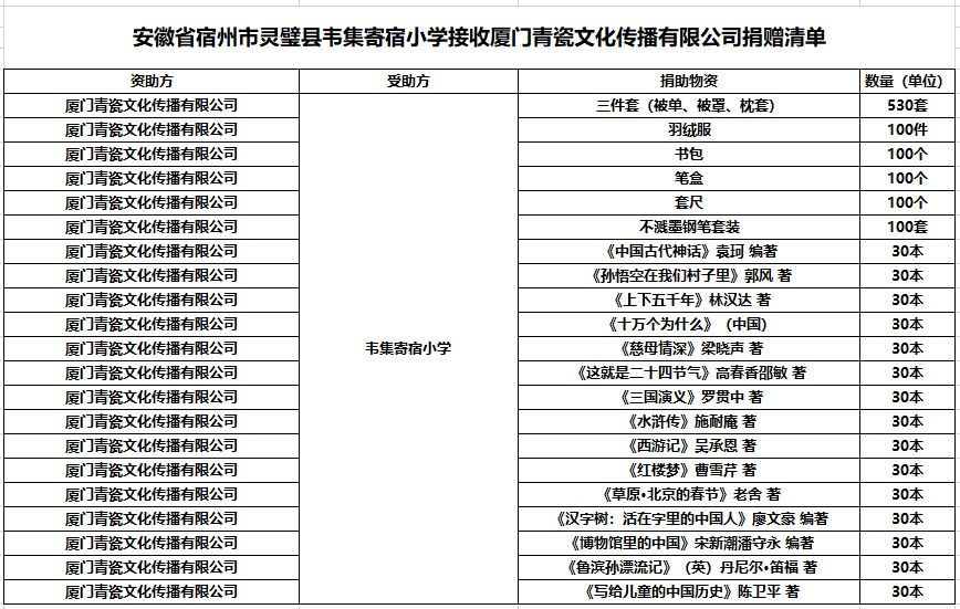 (韦集寄宿小学物资清单)