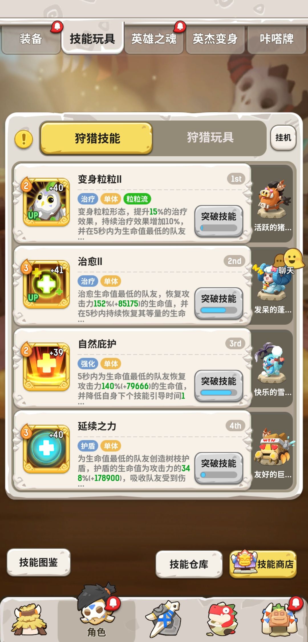 玩具打断,无视等级,带绒毛的情况一般放在技能1-3号位,4号位一般常驻巨居蟹玩具,不带绒毛的情况下可以调节技能把巨居蟹放在3号位,此时也可放在4号位进行打断(一般适用于6级馈赠)