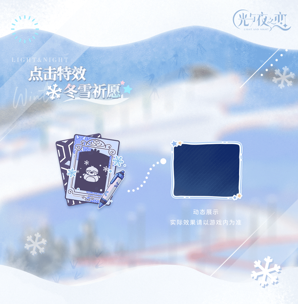 > 活动概要:皑皑霜雪,融融暖意。冬雪之城即将迎来一年一度的庆典,和他一起前往雪原,与企鹅小伙伴们欢度庆典吧!参与活动即可体验冬日专属剧情,获得冬日限定灵犀、专属妆容/称号/点击特效等丰富奖励。