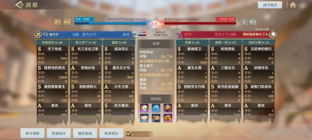 由于目前刚结束攻防剧本的第一阶段,暂时用开荒战报辅助讲解,图中是T2兵种开T4兵种(19地)的战报,完全不虚,有一定参考价值。