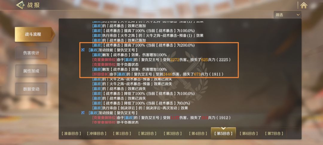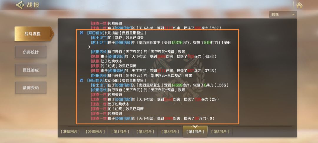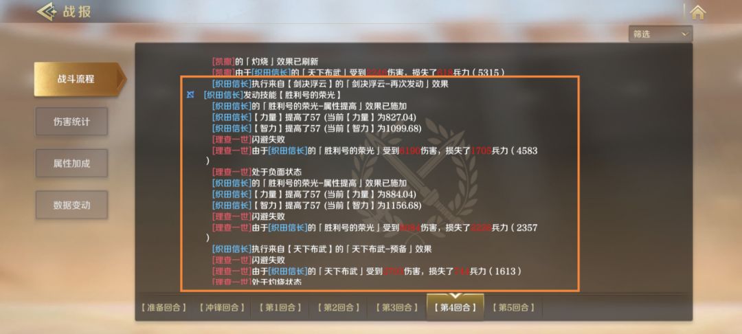 可以看到,在【剑决浮云】的作用下,织田信长可以在前几回合高频率释放【胜利号的荣光】与【奥西里斯复生】,单回合可以叠加60x2x2=240的智力,前几回合内智力轻松破千。