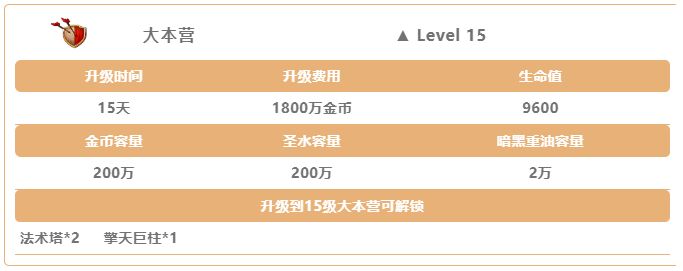我们正在重构和平衡升级费用体系,随着15级大本营重磅登场,我们降低了大量兵种、防御和建筑的升级时间和升级费用。