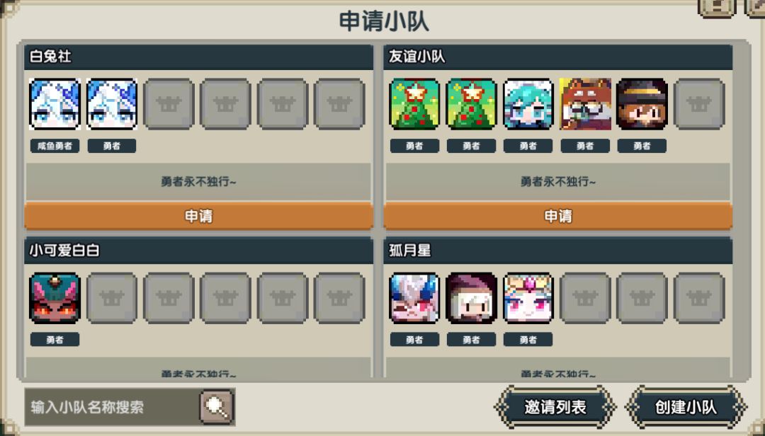 在进入小屋后点击勇者小队即可进入小队页面