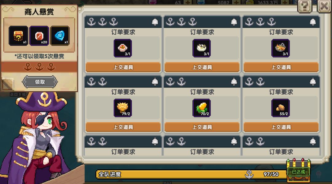 在小队成员一共满足做了50个船锚的条件后,可以在每天4点获得额外的奖励~