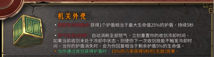 核心是凛冽寒冬触发收剑让收剑加的攻速变成永久加成还触发机关外壳的核心技能,比珍珠加的少,但胜在触发极为频繁