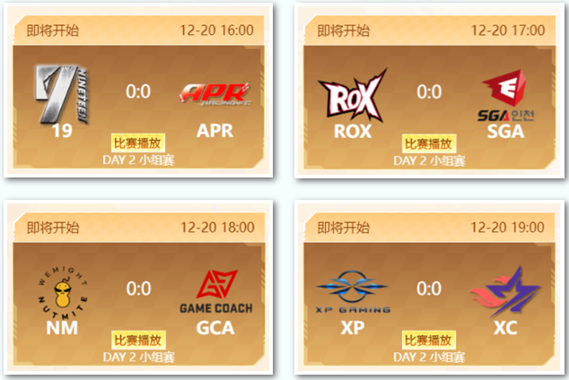APR以微弱优势2-0惊险战胜NM;XC在王牌Ace战中派出848选手,鏖战至迪拜富人区的最后一个弯道惜败,最终以1-2的比分不敌ROX;19被GCA以碾压之势0-2完败;XP鏖战至道具赛最后一局,终点前无力回天,最终0-2败于SGA。