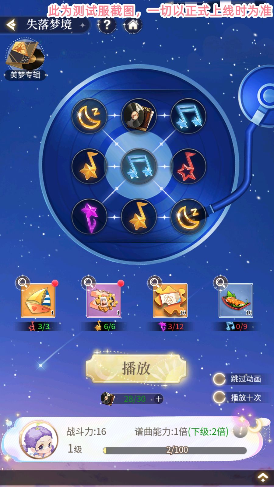 活动期间,三小姐可前往美梦唱片机播放唱片,播放唱片可提高自身战斗力,获得升级经验。谱曲能力越强,美梦唱片机给予的战斗力和经验值越高;而战斗事件和美梦唱片机能够提升角色经验并提升角色等级,角色等级可以提升谱曲能力。