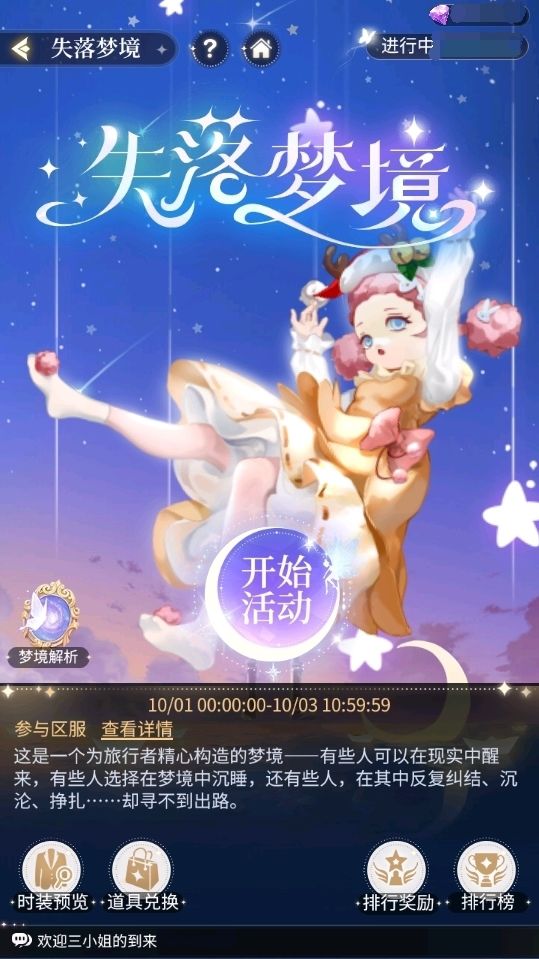 三小姐在活动期间前往梦境,根据自身战斗力情况选择合适的路线,击败噩梦精灵,收集宝物,根据到达的云层领取对应的道具奖励;