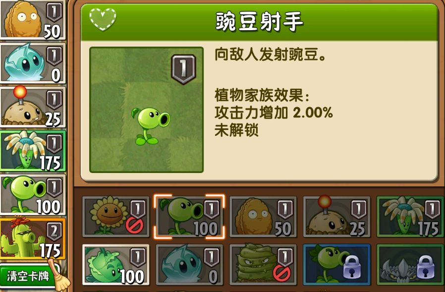 这关的话是不用种植太阳花的,直接选择植物就可以进行一个布局了,简单模式的话达标条件:建立你的防线,抵挡僵尸进攻。开局的话游戏系统会给到你6个位置,让你选合适的植物,小编的话选择了豌豆射手,仙人掌,回旋镖射手,土豆地雷,冰冻生菜,还有坚果,只有仙人掌是2级植物,其余全是1级植物。然后游戏开始会给到你3000的太阳,你要用自己仅有的太阳购买到足够的植物来低于僵尸。