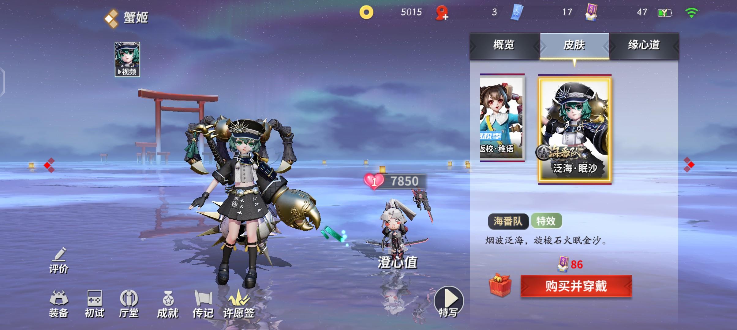 带有彼岸花的皮肤,再买这个蟹姬的皮肤,那个食梦貘有皮肤我试着玩一玩