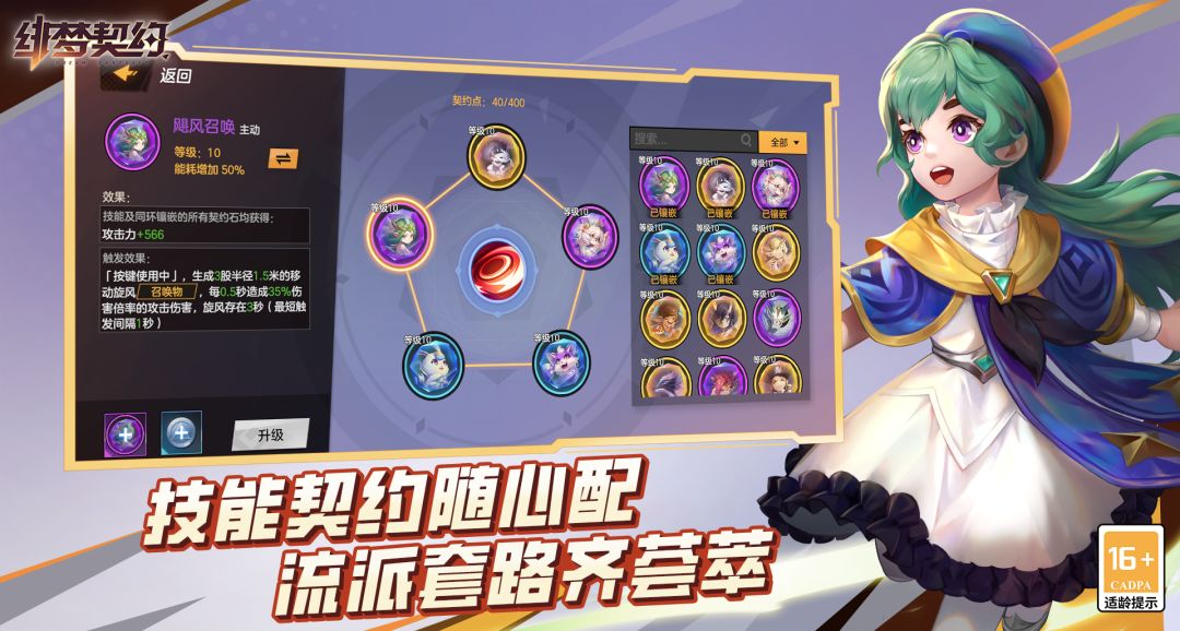 技能、契约石、装备、符石、天赋多种搭配等你解锁!附着词条的契约石与技能高度搭配,可为你的战斗提供助力,高伤高输出不在话下!