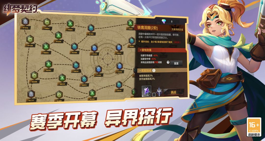 丰富多样的主题制赛季活动即将上线,每一期新赛季都会呈现新主题内容、新活动惊喜,玩法丰富,快乐体验!快来绯梦世界尝试不同的BD构筑,挑战多种活动任务,更有丰厚的赛季奖励等你来拿!茫茫异界,神秘线索不断浮现,快去开启你的冒险吧!