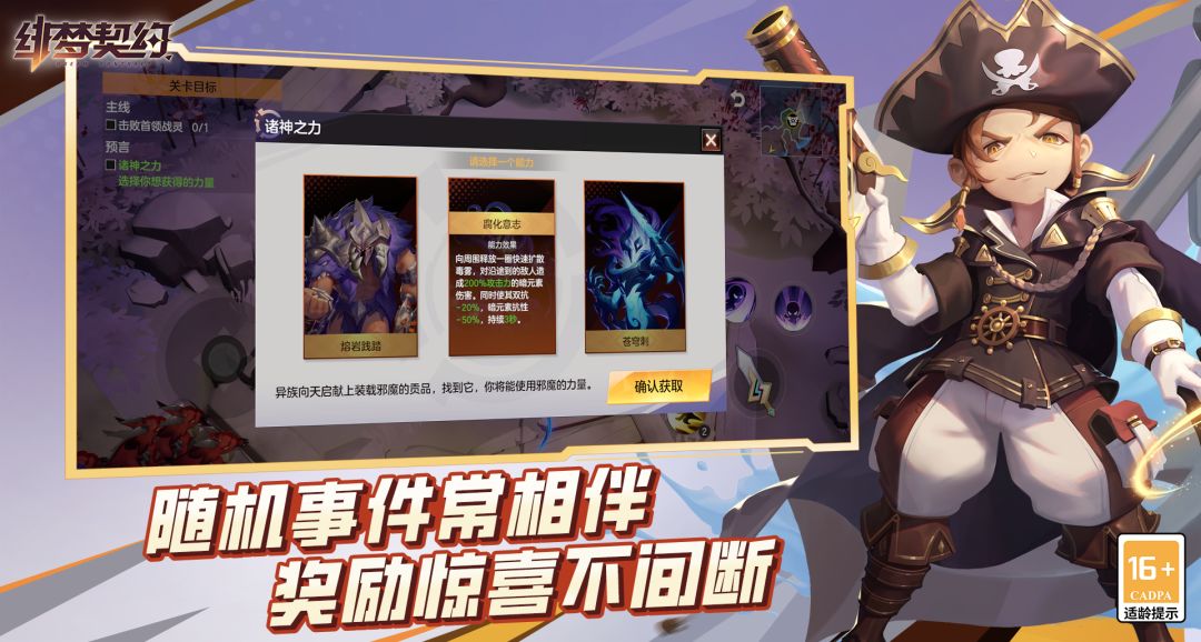 随机事件的出现,让你在游戏中惊喜不断,新体验新感受可能就会在下一关等着你!悄悄地说一句,触发的随机事件还带着随机奖励来的哦!不同游戏模式中更有随机装备、契约石、符石、结晶材料等优质资源大量掉落,更多惊喜等你探索~