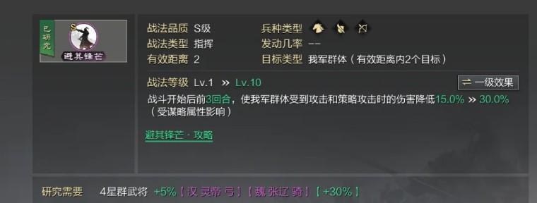避其锋芒也是一个相当强力的战法,通常用作肉队的首选减伤战法,注意和张机冲突,不过这里小笔推荐大家第二个灵帝在拆,一二赛季灵帝作为输出还是不错的。