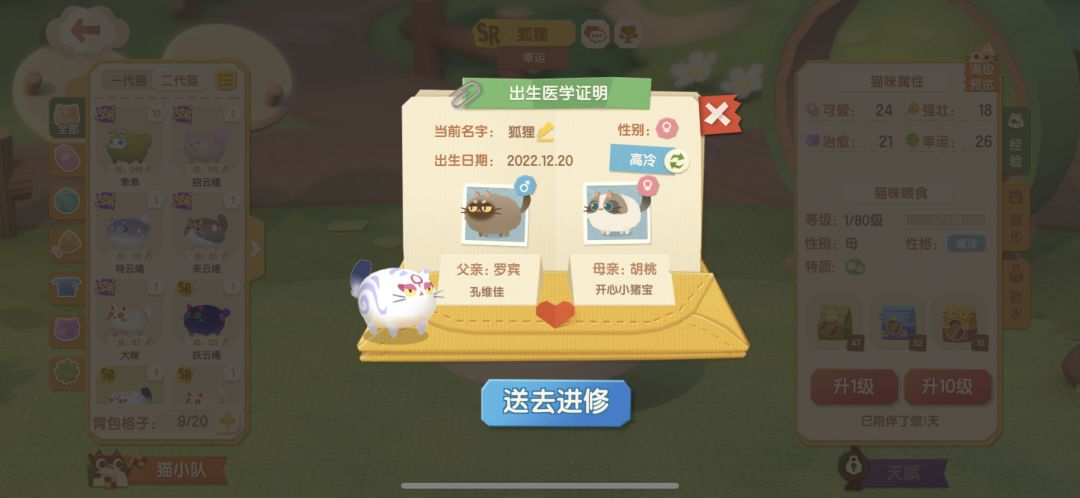 猫咪的数值性格!!!!很不幸,都是随机的,和玩家的努力和选择和搭配和努力都无关。我会觉得无力,我们的努力没有意义!都依靠系统定的随机概率决定好坏。还有我特意花98元买的妖果。如果不为了生妖系列里,图鉴里你们写着的来源妖果,我图什么?混着果子随便生随缘呗!我很喜欢这个游戏,也理解,新游戏有问题理解,但是希望这个问题游戏团队认真对待!认真考虑,尊重玩家,尊重玩家的权益,玩家提问题也是为了游戏能好好发展下去。