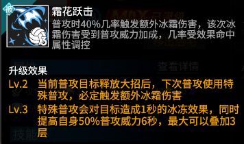 玛莉萝丝普攻时有一定几率触发冰霜伤害,所攻击的目标施放大招后,玛莉萝丝必定触发特殊普攻并对目标造成1秒的冰冻效果,冰冻效果可以打断敌方持续施放技能,特殊普攻释放后还会提高自身的普攻威力,由于普攻触发的冰霜伤害和大招造成的冰霜伤害都会受到普攻威力的加成,因此能提高自身很大的输出能力。