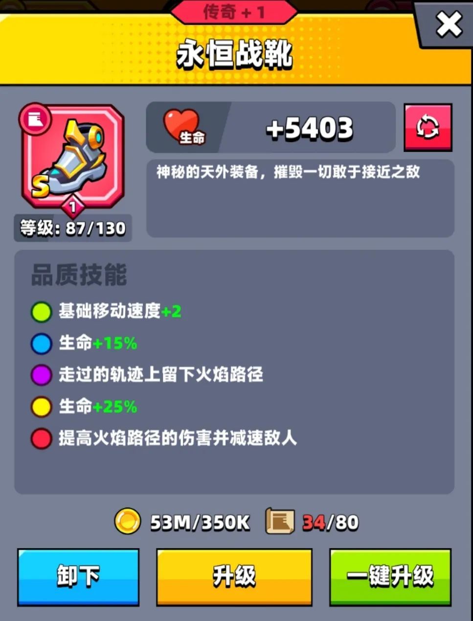 蓝色品质:生命+15%紫色品质:走过的轨迹上留下火焰路径