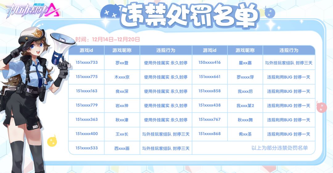 现将12月14日-12月20日的部分违禁处罚名单进行公示: