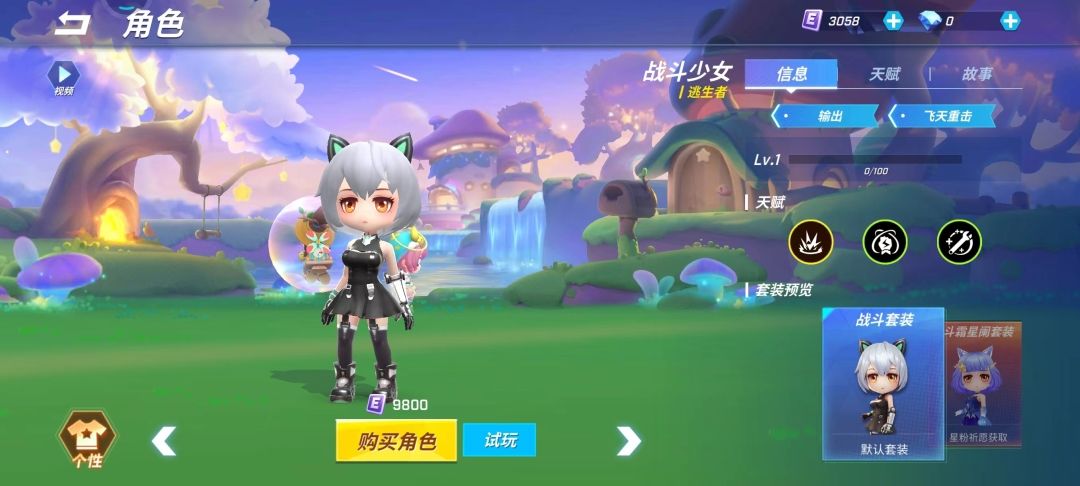 战斗少女这个角色也是9800点券可购买到的,喜欢的友友可以攒点券将她收入囊中,背景故事:这是一味来自2077年的神秘少女,几乎没人见过她笑起来的样子,在第三次世界大战中被一位神秘的发明家救起,战争中失去的手臂被换成了机械臂。来到DMM世界前,被发明家哥哥带着进入一台新研发的神秘机器,之后在一阵炮火声和机器警报声中失去了意识........“会永远跟着哥哥的,和约定的一样,无论去哪”战斗少女的天赋也是有3个主动天赋-天降之物:朝目标地点跳跃,落地时重锤地面敌人造成伤害并使其无法攻击,冷却60/50/40/20秒,消耗金币80被动天赋-充能:将主动天赋升级为可充能储存形态,充能后可连续使用,充能时间等同于冷却时间,储存上限2/3/4/5次被动天赋-自我修复:一段时间内未受到伤害可自动回复生命值,回复准备时间25/20/16/8秒 。