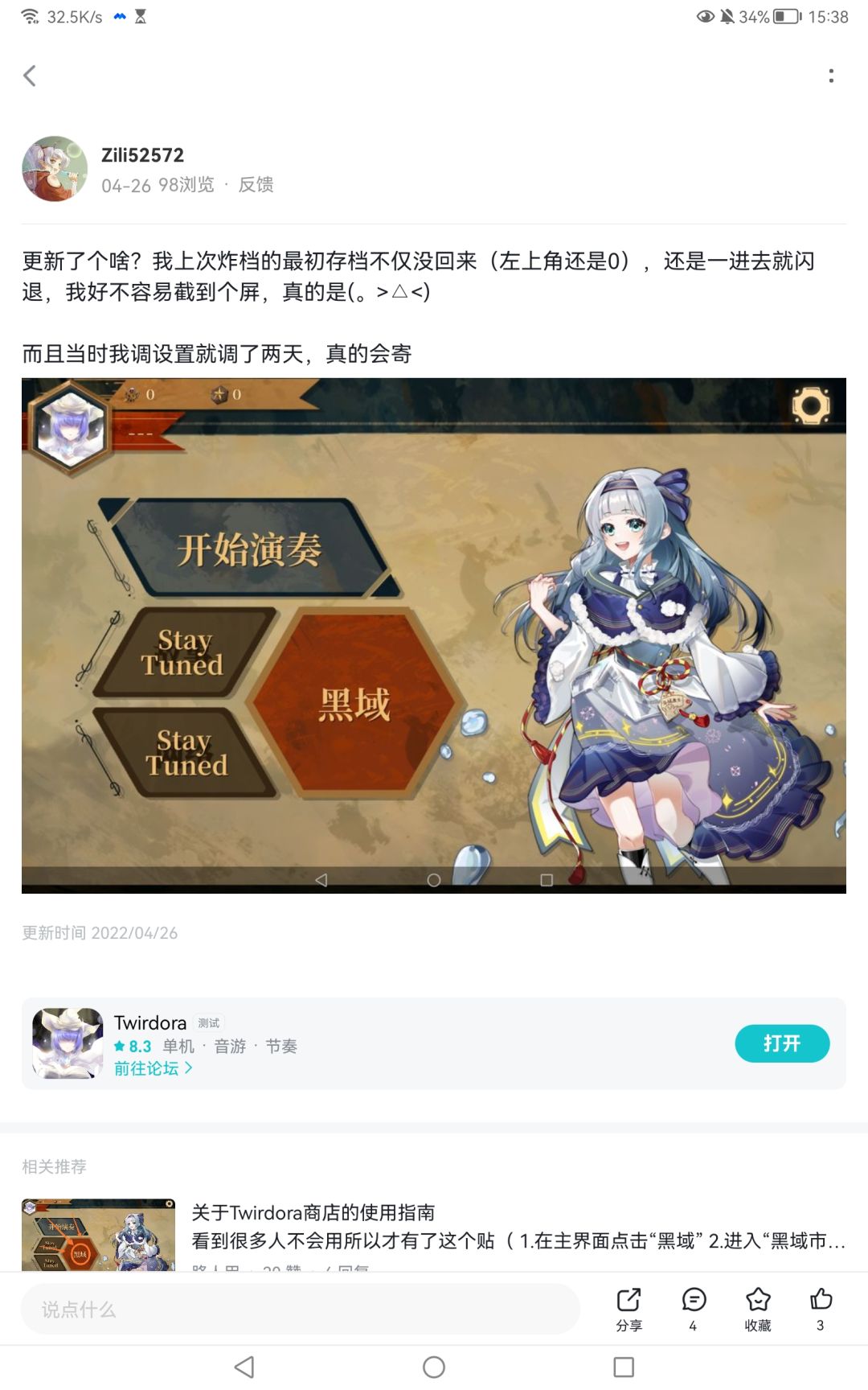 你游我真的不知道要怎么形容了,,,七八个月大半年过去了,想起来你游有麦金的歌就想下回来看看,结果这次!我连进都进不去!甚至我想录屏证明闪退的过程,也被它一边闪退一边掐掉了😰上次丢档的事也就算了…我认了我倒霉,现在连玩都玩不了…