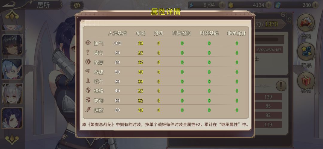 三测新大陆战姬20级属性成长一览