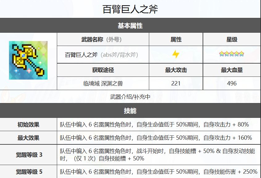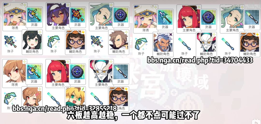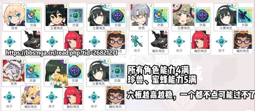 最后说几句:因为阿比斯的难度可以说比地狱本还高,所以打不过的萌新们也不要太过焦虑,尝试挑战低难度毕业,因为不同up给的配队的模式略有不同,所以为了保险起见我就把有不同的图都贴在上面了,同时再次强调,一定记得选雷背水斧,想知道属性的我给你贴在下面,不要到时候手贱去点大葱剑啊铁咩(拳头握紧)