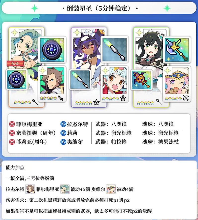 本次活动由于对队伍回转有较高的要求加上是长线副本,所以优质的作业队伍基本上出自风属性,光属性和水属性,主要原因就是三星的武器池武器可以为队伍带来更高的回转速度