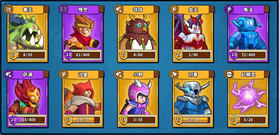 具体阵容:悟空、毒王、咕咕、电法、女王、萨满、沙皇、小野、刀客、幻精灵