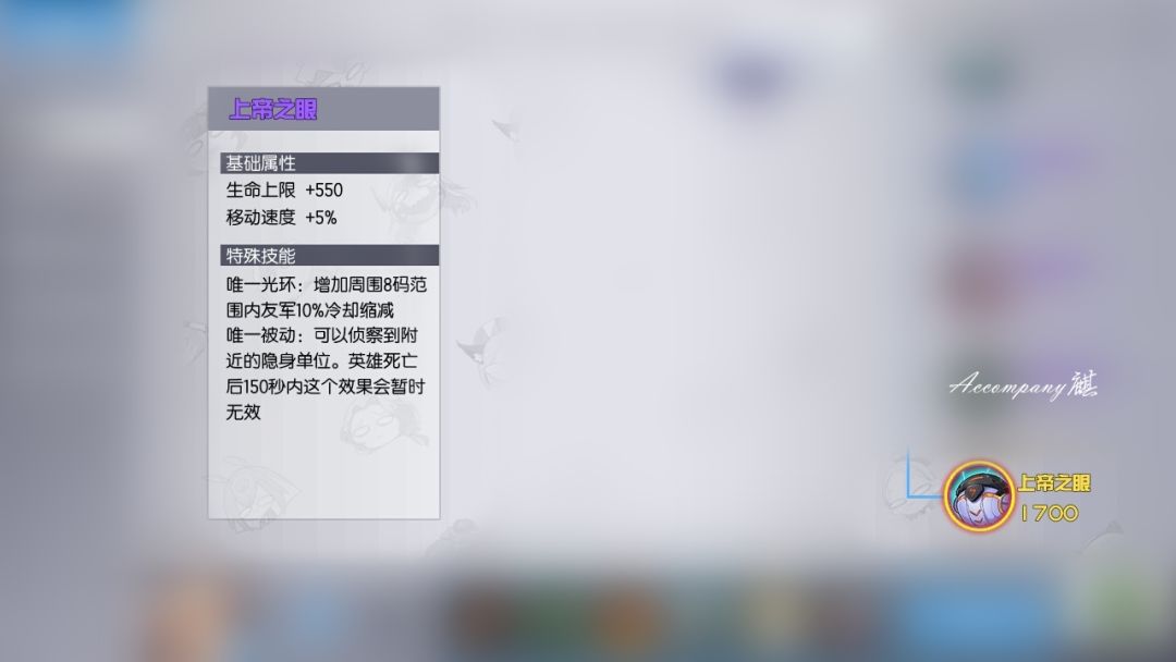 推荐原因:较高的性价比,移速加成(之后再谈谈移速),对隐身的敌方目标直接型的单方面压制,对团队成员CD缩减的贡献。