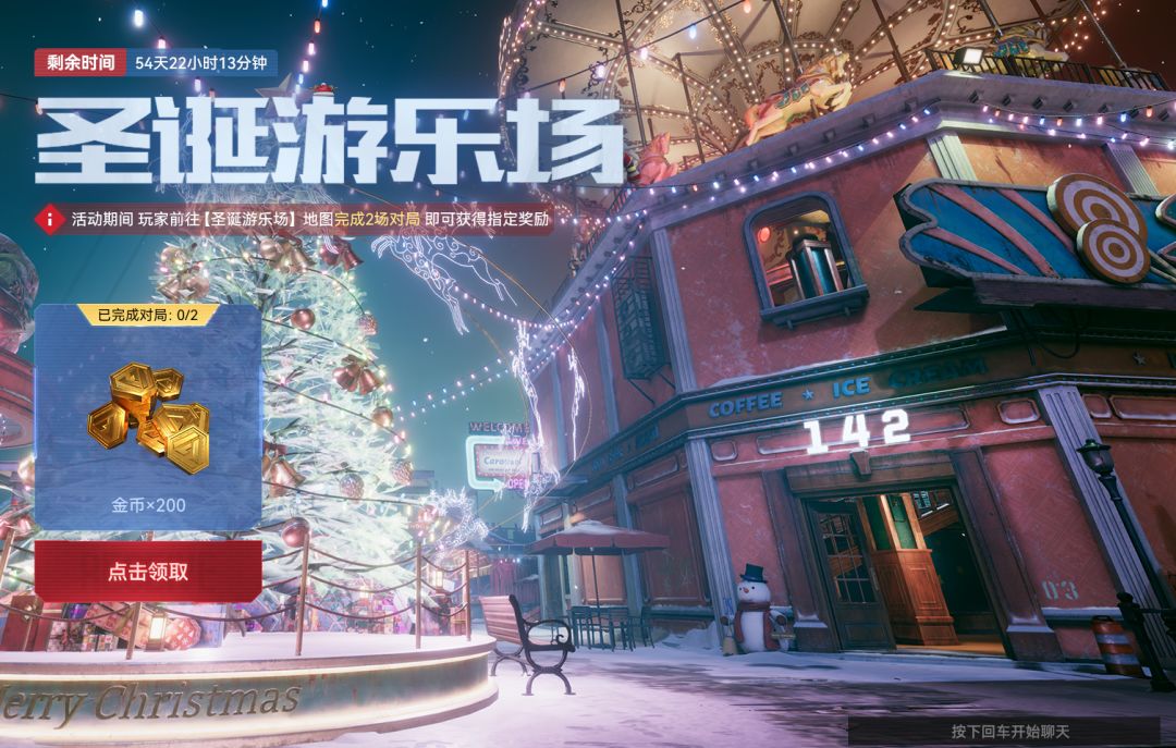 ◊圣诞游乐场:活动期间,玩家前往【圣诞游乐场】地图完成2场对局,即可获得指定奖励