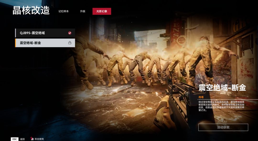 【震空绝域】 适配武器:QJB95 释放技能后,将周围敌人震至浮空状态倒地,并施加减速效果。