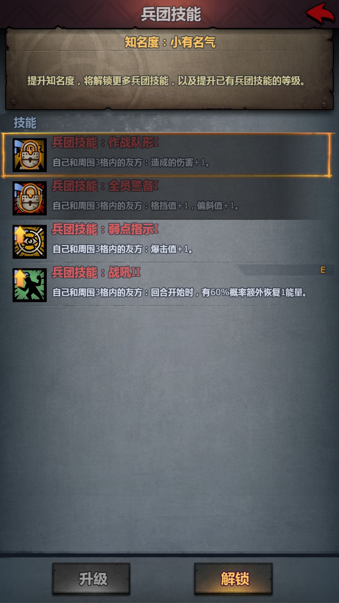 兵团技能面板